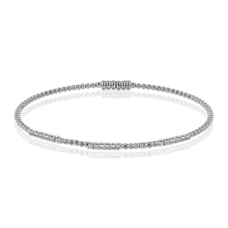 This sparkling beaded bangle – perfect for wearing alone or stacking – features an elegant overlap design and sparkling white diamonds.