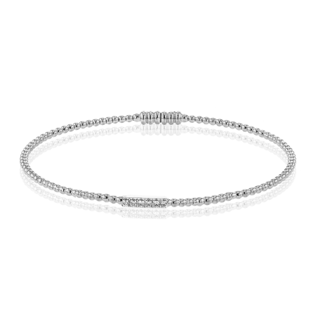 This sparkling beaded bangle – perfect for wearing alone or stacking – features an elegant overlap design and sparkling white diamonds.